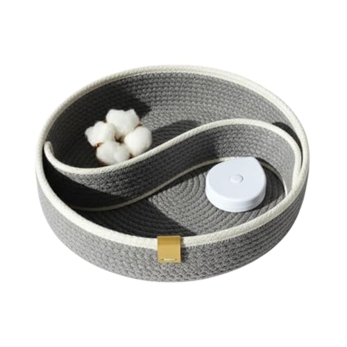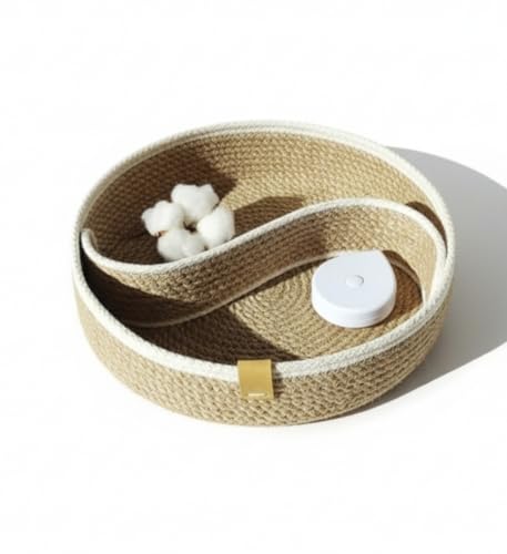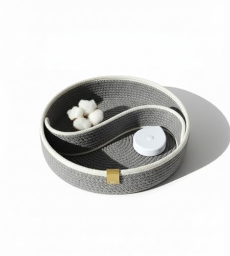 - تصميم بحبل قطن: سلة مصنوعة يدويًا بنسيج محبوك من حبال القطن بنقشة حلزونية بلون أنيق من الرمادي والأبيض، مثالية لتنظيم المنزل العصري.
