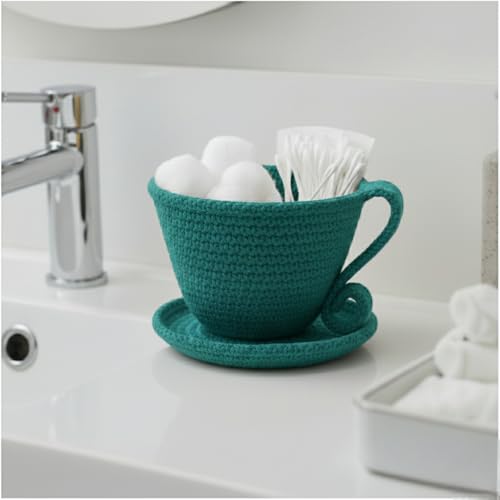 Generic - حامل اكياس شاي فاخر مصنوع يدويا مع صحن من ام زد - كوب منظم شاي ممتاز صديق للبيئة للمطبخ ومحطة القهوة، ازرق فاتح