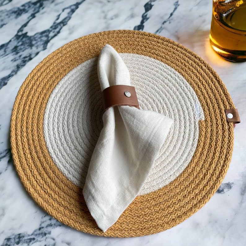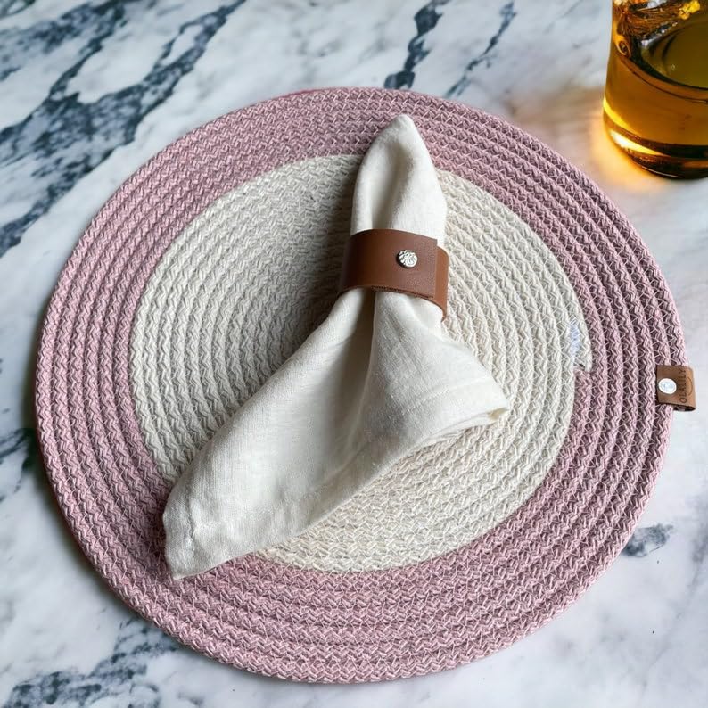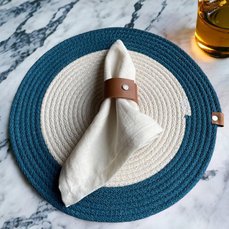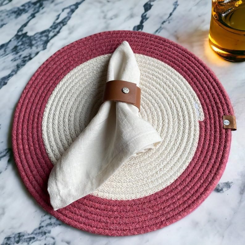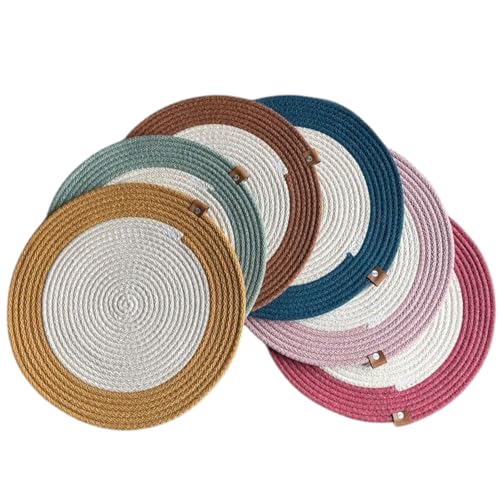Generic - مفارش طاولة دائرية من حبل قطن مضفر، تصميم منسوج بلونين من ام زد، 6 ألوان متاحة، قطر 18 سم