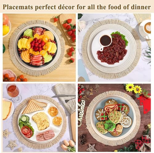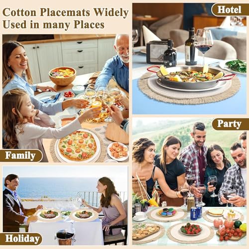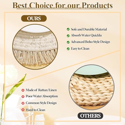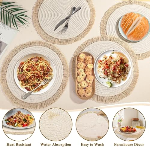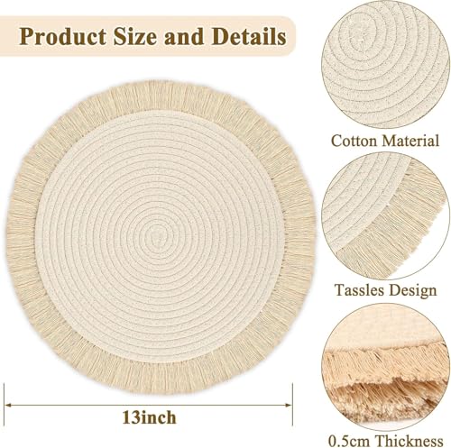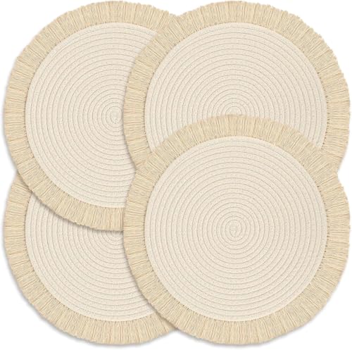 Generic - طقم مفارش مستديرة من ام زد مكونة من 4 مفارش طاولة 33 سم قابلة للغسل من القطن المقاوم للحرارة لتزيين طاولة الطعام، مفارش مطبخ ريفية سميكة غير قابلة للانزلاق منسوجة يدويا بنمط بوهو (قابلة للغسل)