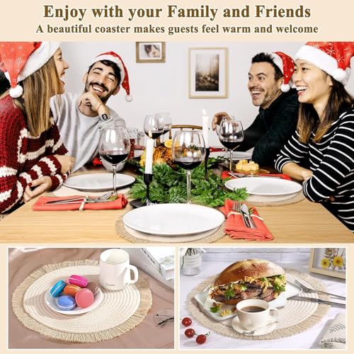 - متعددة الاستخدامات وعملية: حجم مفارش الطاولة هذه 13 انش يجعلها متعددة الاستخدامات ومناسبة لإعدادات الطاولات المختلفة. سواء كنت تستضيف حفل عشاء رسمي أو تستمتع بوجبة غير رسمية مع العائلة، فإن هذه المفارش الدائرية ذات الشراشيب تضيف لمسة من الأناقة مع حماية أسطح طاولتك. توفر المفارش المزرعة عزلًا ودودًا مثاليًا ضد الحرارة لطاولة الطعام الخاصة بك مما يحمي أسطح الطاولات وسطح الطاولة من الطعام الساخن