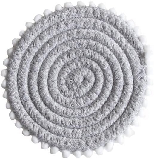 Generic - قواعد أكواب دائرية من القطن الطبيعي للمشروبات، قواعد أكواب قابلة للغسل مصنوعة من حبل قطني منسوج يدويا مع شراشيب، قواعد أكواب عازلة للحرارة بنمط بوهو لتزيين الطاولة من ام زد، بلون رمادي، طقم من 4 قطع