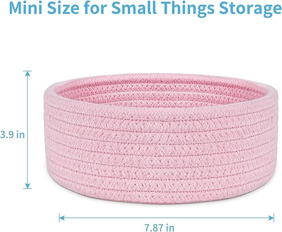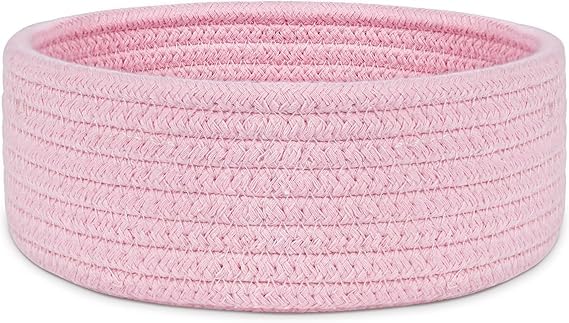 Generic - سلة منسوجة صغيرة، سلة تخزين صغيرة فارغة من الحبال القطنية، سلة ديكور دائرية، سلال تخزين سلة للالعاب والمنتجعات الصحية والجوارب والحضانة وغرفة الاطفال،بينك (20*20*9 سم) من MZ