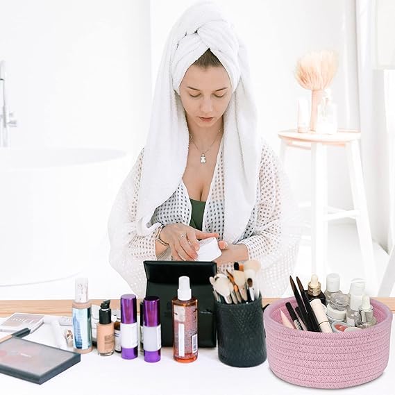 - سلة منسوجة صغيرة، يمكن استخدامها على طاولة السرير والمدخل والخزانة ورف الخزانة ورف الكتب والمكتب وغرفة النوم والمعيشة والمطبخ وغرفة الأطفال