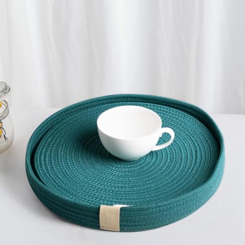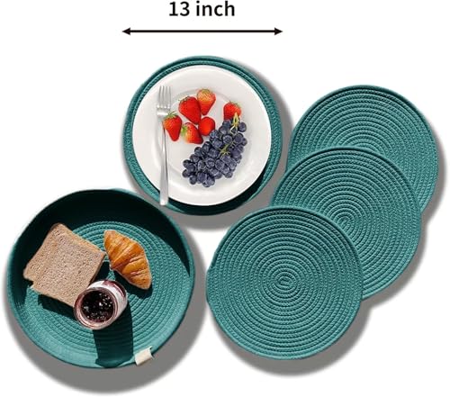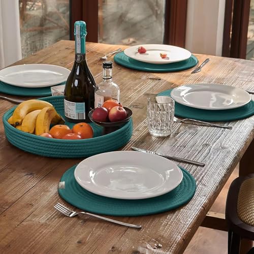 Generic - مجموعة مفارش مستديرة من حبال قطنية منسوجة من ام زد مكونة من 4 قطع مع حامل متضمن، مضادة للانزلاق ومقاومة للحرارة لديكور طاولتك المثالي! (ازرق داكن، 33 سم) (قابلة للغسل) (قطن طبيعي)