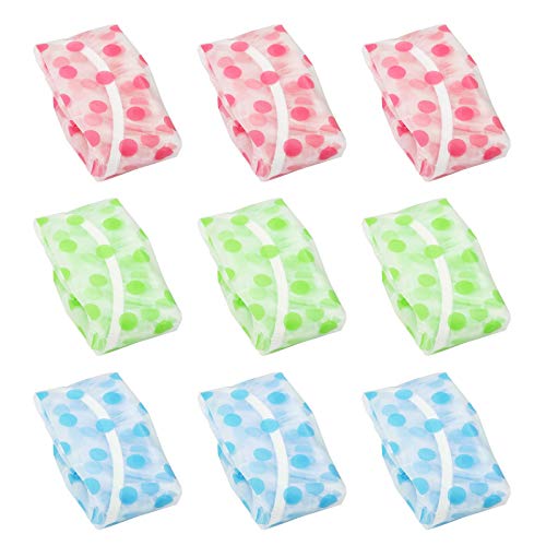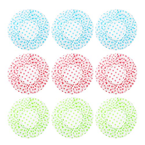 “N/A” - قبعات الاستحمام GOHONGXING ، 9 قطع أغطية بلاستيكية مقاومة للماء ، قبعات استحمام قابلة لإعادة الاستخدام ، قبعة استحمام بشريط مطاطي للسيدات صالون سبا للسيدات.