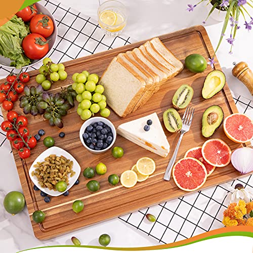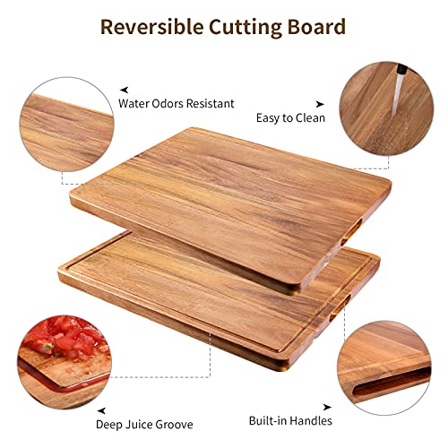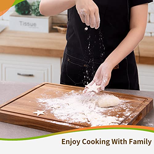 N++A - لوح تقطيع خشبي كبير من خشب الاكاسيا للمطبخ وقابل للاستخدام علي الوجهين ومناسب لتقديم الطعام للفواكه اللحوم والخضار
