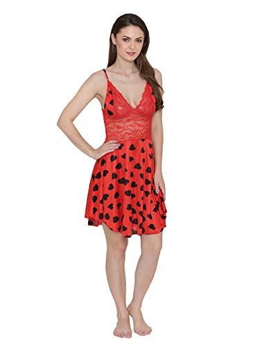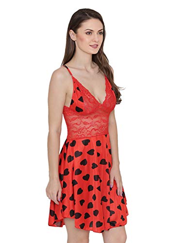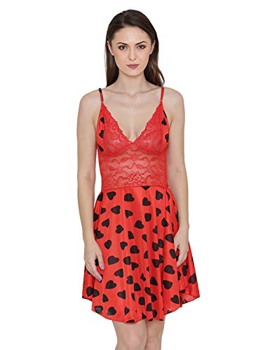 N-Gal - N-جال فستان بيبي دول قصير مطبوع من الساتان، لون احمر، مقاس 40