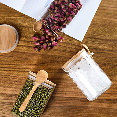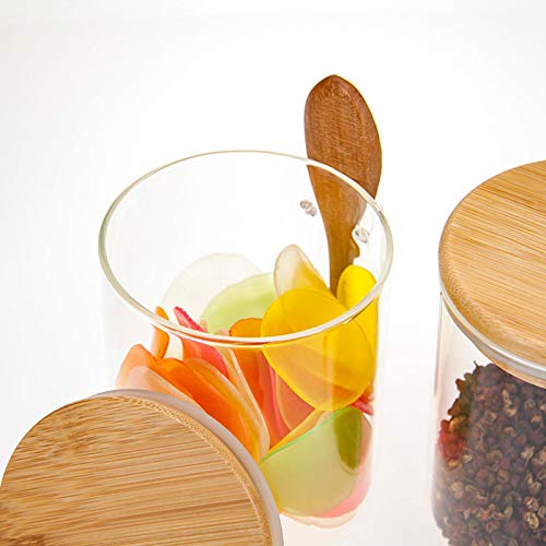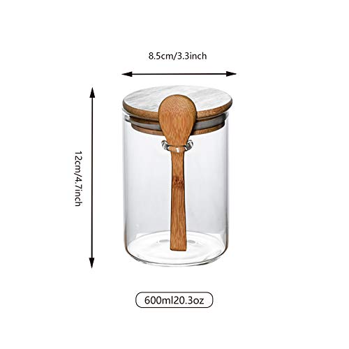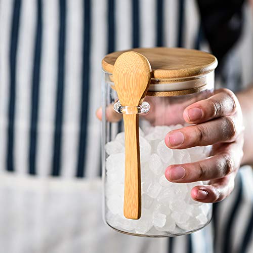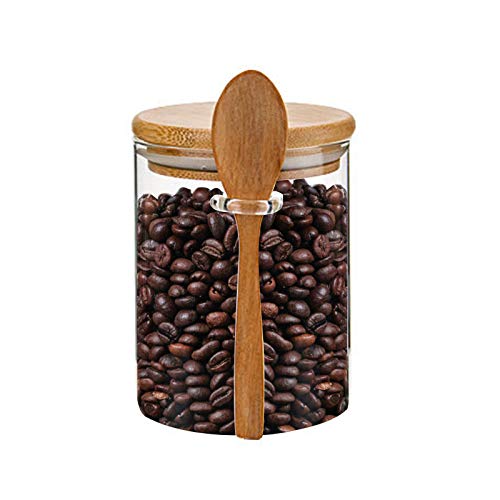 SCWBOEII - برطمان تخزين طعام زجاجي محكم الغلق مع ملعقة خشبية لحبوب القهوة والسكر والشاي والملح والحلوى والتوابل من اس سي دبليو يو اي