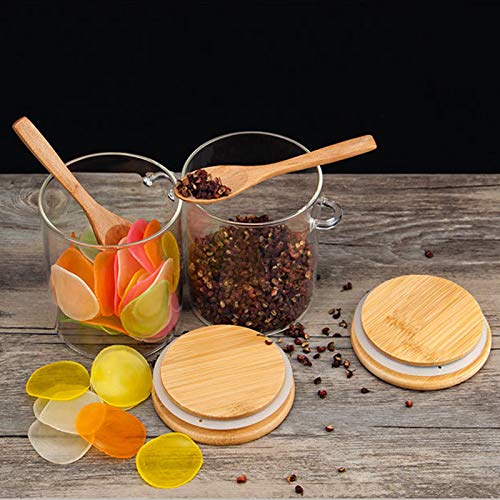 - المواد: مصنوعة من زجاج عالي الجودة وتأتي مع أغطية خشبية من الخيزران وملعقة آمنة على الطعام وتوفر استخدامًا طويل الأمد.