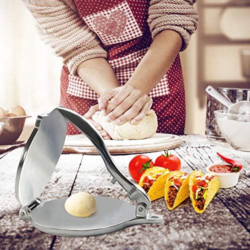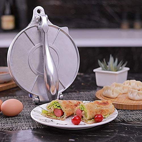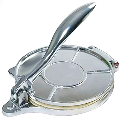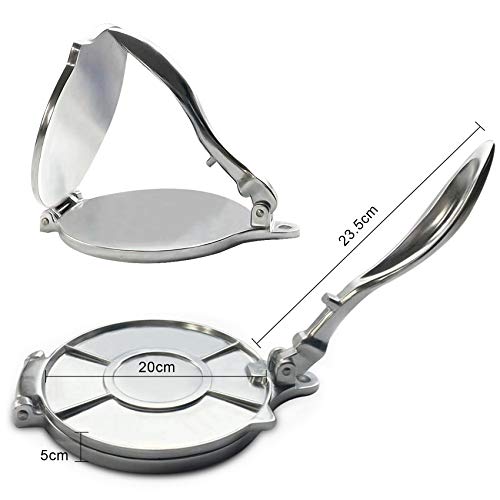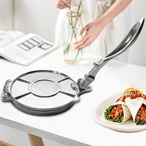N/W - ماكينة صنع خبز تورتيلا من خليط الالومنيوم المعدني مع مقبض طويل مريح وقرص كبير لصنع التورتيلا والتاكو والبوريتو والبيتزا والعجين (23×20×5 سم)، فضي