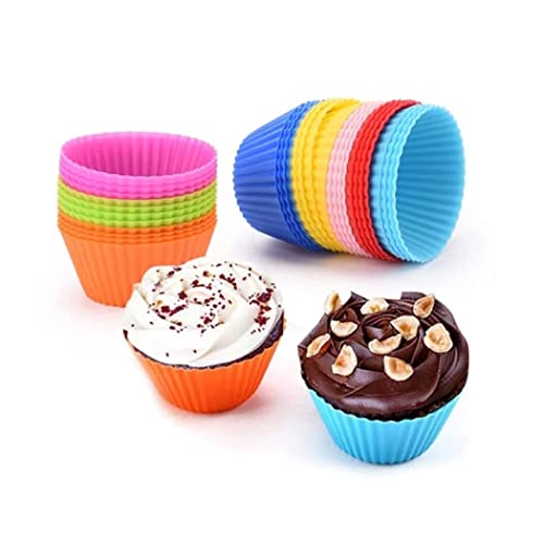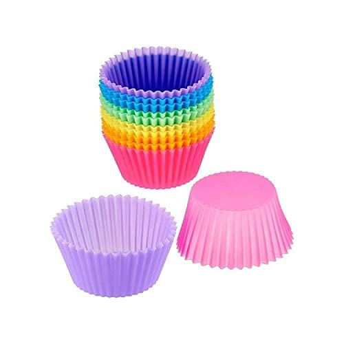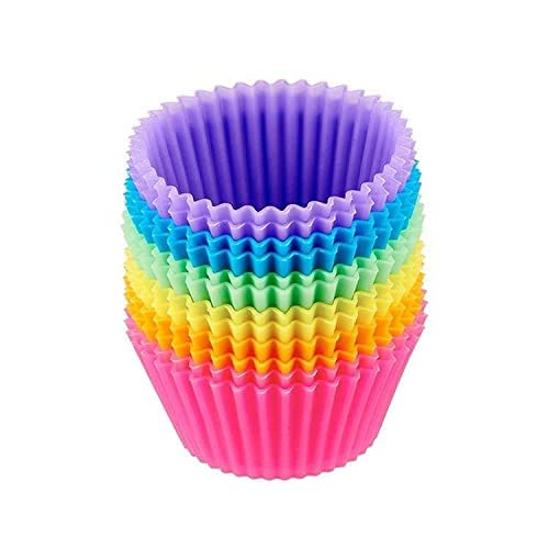 NA/ - قوالب كب كيك من السيليكون قابلة لاعادة الاستخدام، قوالب المافن المصنوعة من السيليكون، قوالب اكواب قوس قزح، قوالب مافن سيليكون، حافظات كب كيك للخبز، 12 قطعة
