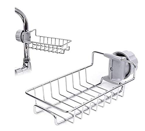 N\A - حامل إسفنجة صنبور من قطعتين، منظم حوض المطبخ من ان ايه، رف صنبور الحمام، رف تصريف تخزين لوازم الاستحمام، رف تعليق إسفنجة الصابون من الستانلس ستيل مناسب فقط للصنبور الدائري