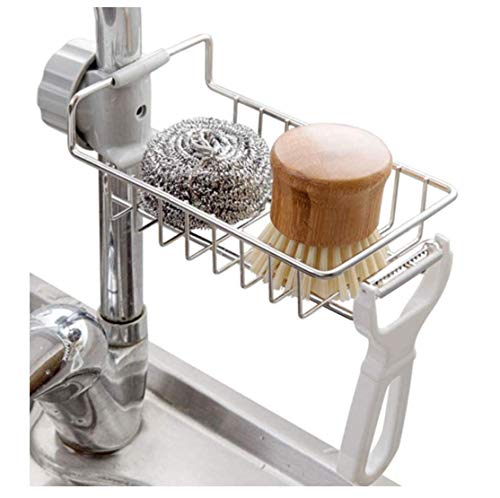- ستانلس ستيل عالي الجودة - مصنوع من مادة الستانلس ستيل الصلبة؛ شكل كلاسيكي، أنيق وجميل. حامل إسفنجة المطبخ مصنوع من الستانلس ستيل المتطور والمقاوم للصدأ. تتميز بسعة تحمل قوية تضمن بقاء منظم حوض المطبخ هذا لسنوات قادمة