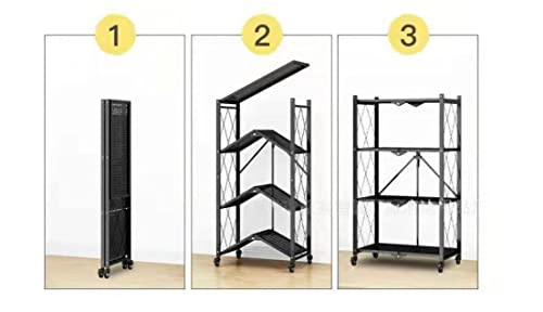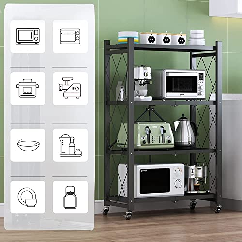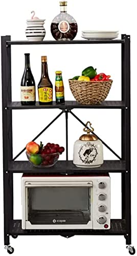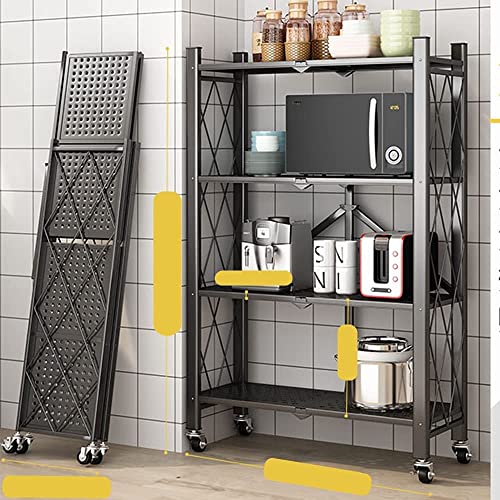 N\A - رف قائم قابل للطي ارفف تخزين قابلة متعددة الارفف معدني شديد التحمل مع عجلات مناسب للمطبخ وغرفة النوم والمرحاض وغيرها من المشاهد اسود اربعة طوابق