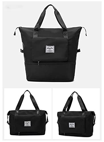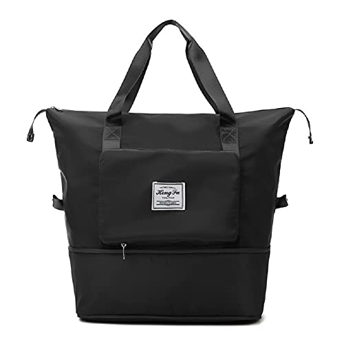 N\A - شنطة سفر بسعة تخزين كبيرة قابلة للطي وسهلة الحمل متعددة الاستخدامات، شنطة دفل من قماش اوكسفورد خفيفة الوزن ومقاومة للماء للاغراض الجاف والمبللة مناسبة للرياضة والعمل والنزهة, أسود, 16.5*15.0*8.7inch