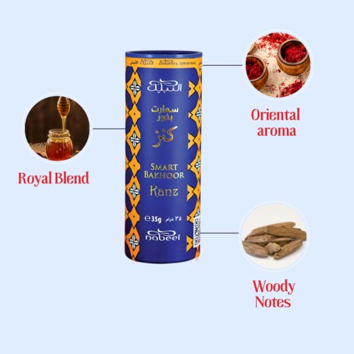 Nabeel - سمارت بخور كنز 35 جرام، كنز الحياة بروائح الورد وزهرة البرتقال والقرنفل وخشب الصندل واليلانج يلانج والياسمين والنفحات الشمسية والسكر الاسمر والمسك وفول التونكا وغيرها، بخور شرقي من نبيل