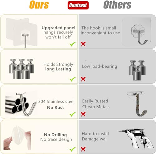 - متعددة الاستخدامات من الستانلس ستيل 304 وخطاف نانو لاصق - خطافات الحائط الخاصة بنا مصنوعة من معدن عالي الجودة ومختار، وهو مقاوم للصدأ بفعالية. غراء نانو متطور، مصنوع من أحدث مواد جل الأكريليك، توفر الخطافات اللاصقة الخاصة بنا التصاقًا قويًا بشكل لا يصدق ومتانة ممتازة.