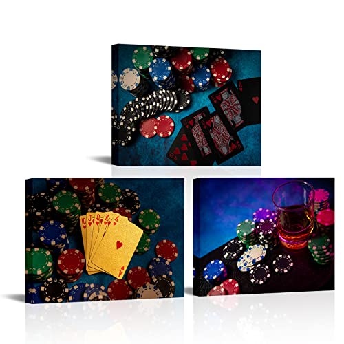 Nachic Wall - لوحة جدارية قماشية بتصميم بطاقات لعب البوكر، لوحة فنية بمفهوم الكازينو جاهزة للتعليق ومغلفة بأسلوب المعرض مناسبة للنوادي والمقاهي من ناشيك وول، صغير