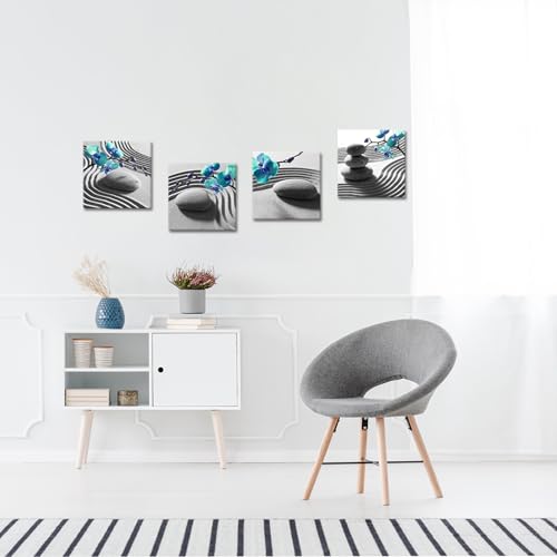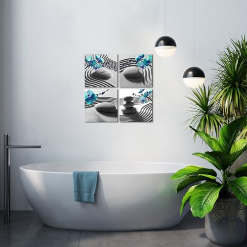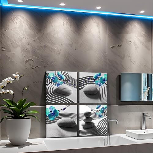 Nachic Wall - لوحة فنية جدارية قماشية مؤطرة أنيقة لغرفة النوم بلون أزرق وتصميم بساتين فاكهة فالاينوبسيس، صورة حجر تدليك، عمل فني يبعث على الراحة، ديكور زين سبا للحمام جاهز للتعليق من ناشيك وول (30×30 سم/ 4 قطع)