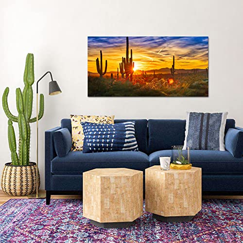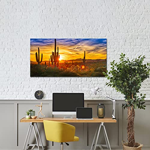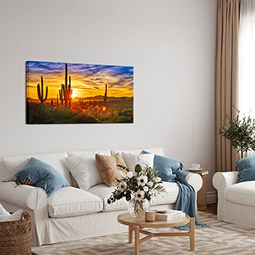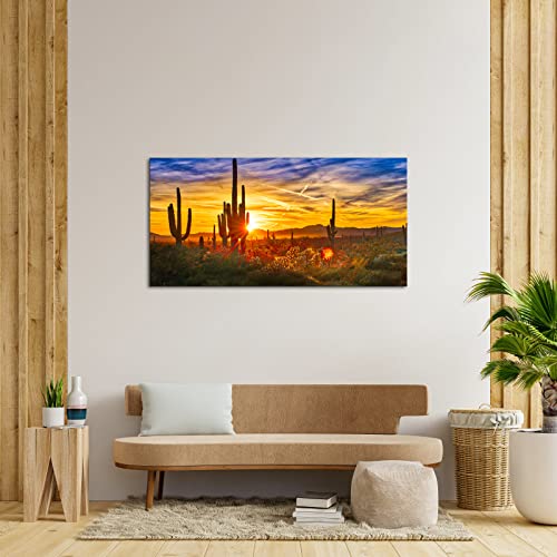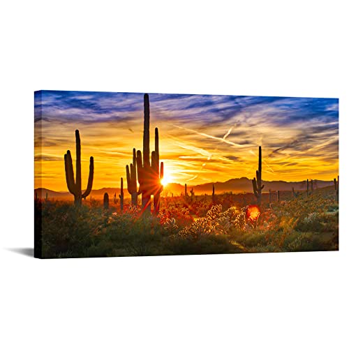 Nachic Wall - ناشيك وول لوحة فنية قماشية كبيرة الحجم لديكور صحراء سونوران مطبوعة بصورة ساجوارو عند الغروب، لوحة مؤطرة لديكور غرفة المعيشة والمنزل جاهزة للتعليق 24 انش × 48 انش، متعدد