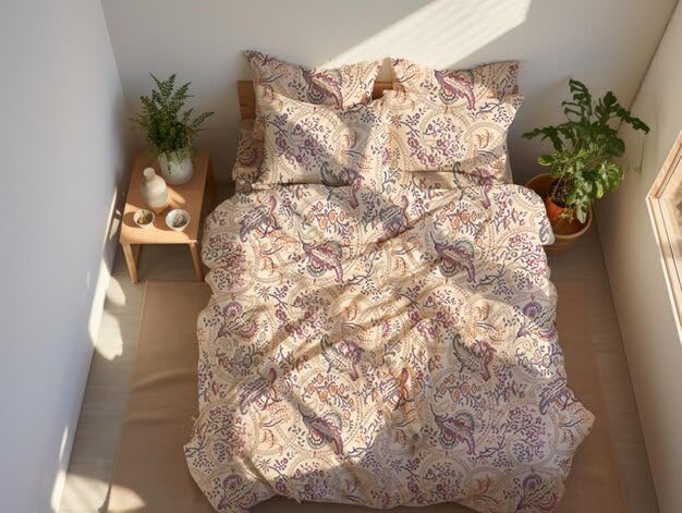 - 1 غطاء لحاف: 240 × 240 سم، 2 غطاء وسادة ربة منزل: 50 × 75 سم + غطاء 5 سم
