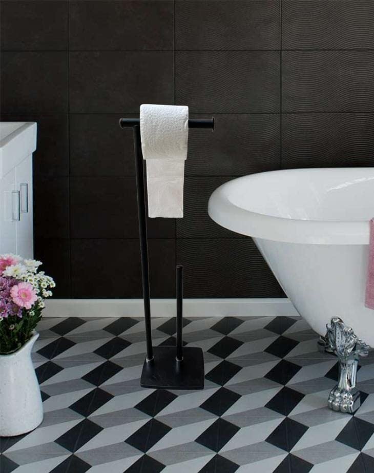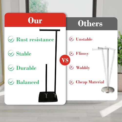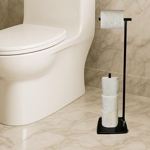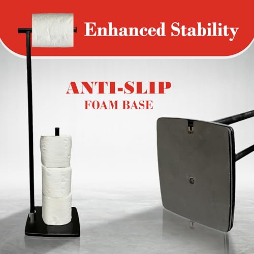 - معدن عالي الجودة - حامل ورق التواليت القائم مصنوع من معدن أسود مطلي بمسحوق عالي الجودة مع لمسة نهائية غير لامعة. تمت إضافته بقاعدة دائرية من الكروم للحصول على لمسة نهائية رائعة.