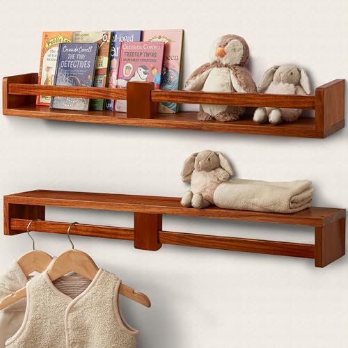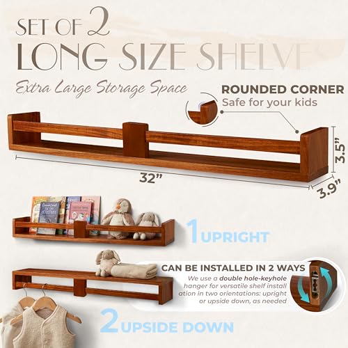 NAGAWOOD - ارفف لغرفة الاطفال رف كتب خشبي مقاس 32 انش مجموعة من 2 عائمة تثبت على الحائط للاطفال منظم تخزين الصور والكتب المصورة حائط