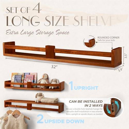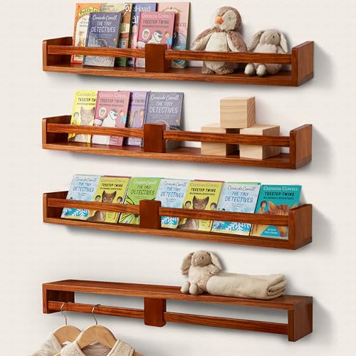 NAGAWOOD - رفوف غرفة نوم الأطفال بطول 81 سم، مجموعة رفوف كتب عائمة خشب للأطفال تثبت على الحائط، لكتب الأطفال والقصص المصوّرة والألعاب والصور، منظم تخزين وديكور للحائط من ناجا وود (طول 81 سم، عبوة من 4 قطع)