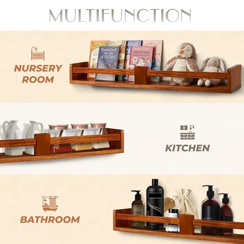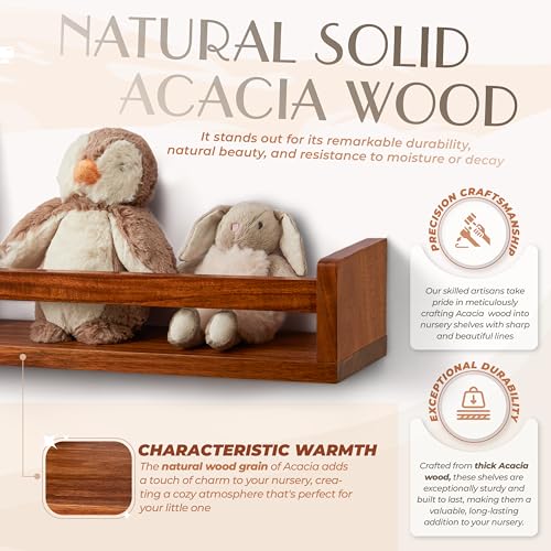 - ✅ رفوف غرفة نوم الأطفال الريفية المثالية. حافظ على غرف نوم الأطفال والحضانات مرتبة مع رفوف غرف الأطفال العائمة الجميلة المصنوعة من خشب الأكاسيا الطبيعي الفاخر والمستدام، والمصممة بشكل واسع وعميق لتستوعب بسهولة كتب الصور والعرائس المحشوة والألعاب والتحف الصغيرة وغيرها.