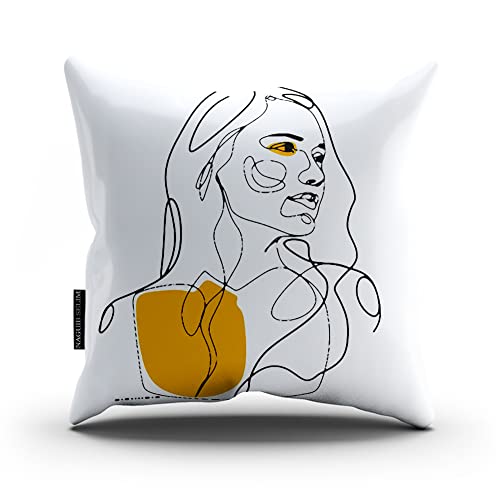 Naguib Selim - غطاء وسادة عصري من نجيب سليم 2234 - نمط معقد، متعدد الألوان - مربع 45.72 × 45.72 سم - نمط فريد من نوعه على الوجهين - قطن وكتان وحرير - ديكور غرفة المعيشة - هدية الانتقال لمنزل جديد