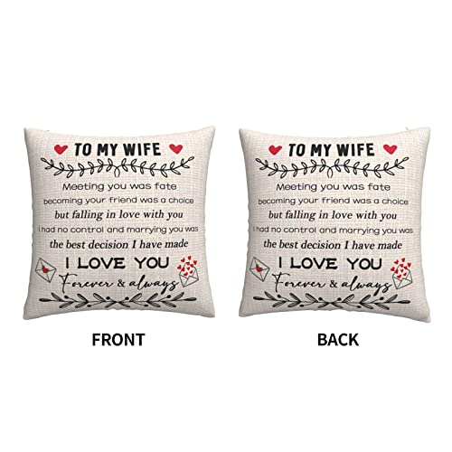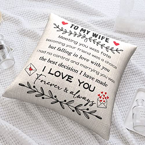 Nahjiiem - اكياس مخدات بطبعة عبارة «to My Wife» للذكرى السنوية وعيد ميلاد الزوج وعيد الحب مناسبة ديكور الكنبة مقاس 18 × 18 بوصة