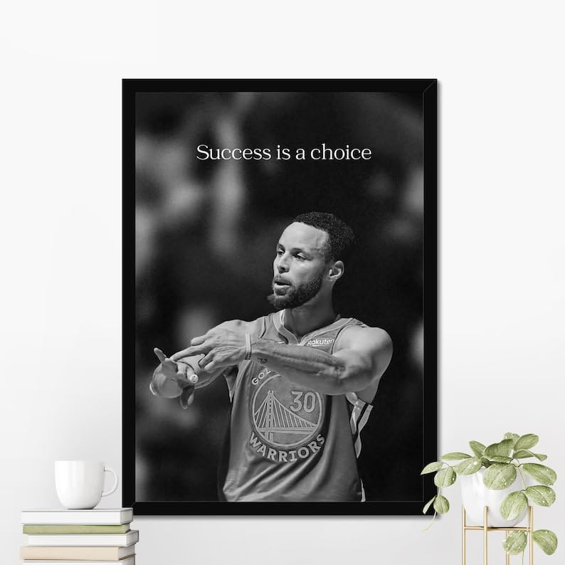 NAIA - بوستر مؤطر بتصميم الدوري الأميركي للمحترفين للاعب ستيف كاري من نايا، مقاس 30-30 × 40 سم
