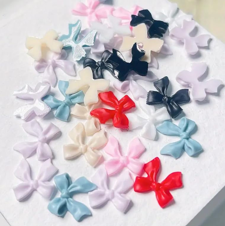 Generic - زينة وإكسسوارات أظافر، إكسسوارات تزيين الأظافر للبنات، إكسسوارات أظافر راتنج على شكل فيونكات، زينة أظافر للنساء، مستلزمات تزيين الأظافر (عبوة 50 قطعة)