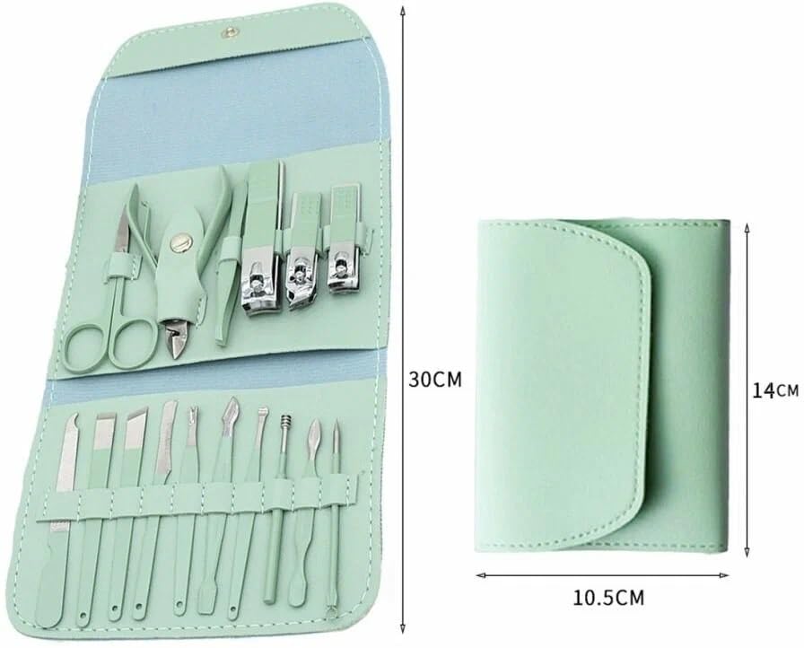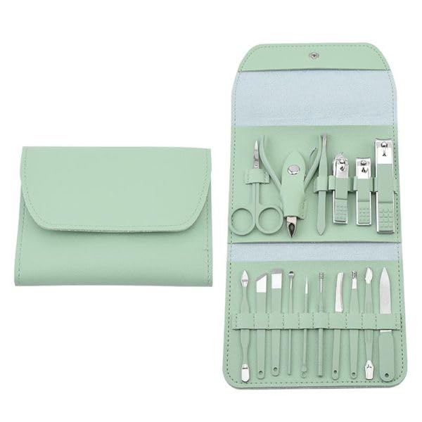 Generic - Nail Clippers Kit 16 Pcs – Professional Stainless Steel Set with Nail Scissors, Tweezers, Cuticle Trimmer – Nail Care Tool Kit for Home & Travel - Green