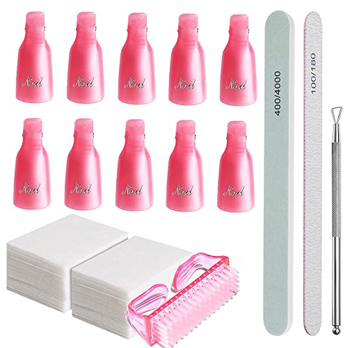 Generic - مجموعة أدوات إزالة طلاء الأظافر الجل من 10 قطع من مشابك أظافر بلاستيكية ومناديل قطنية للأظافر ومبرد أظافر وفرشاة أظافر ومقشرة لدفع الزوائد اللحمية لاكسسوارات تجميل الأظافر للنساء