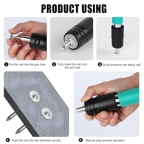 - يتميز بآلية سهلة الاستخدام، يعمل مسدس المسامير هذا على تبسيط مهام التثبيت من خلال عملية بسيطة من خمس خطوات: ارتداء معدات واقية، واختيار المسمار المناسب، ووضع المسدس عموديًا على مكان العمل، والضغط عموديًا نحو الحائط، مع ضغط غلاف كاتم الصوت عدة مرات لسحب المسمار. تضمن هذه الخطوات السلامة مع زيادة الكفاءة إلى أقصى حد، مما يجعلها في متناول المستخدمين من جميع مستويات المهارة.