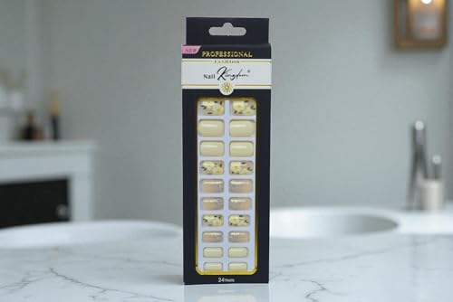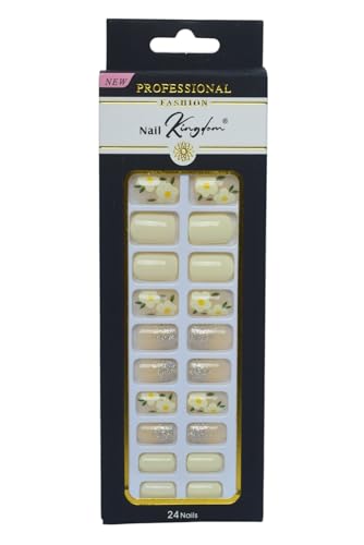 Generic - مجموعة أظافر التركيب بالضغط بتصميمها المطبوع نيل كينجدوم، 24 قطعة، اوف وايت