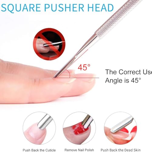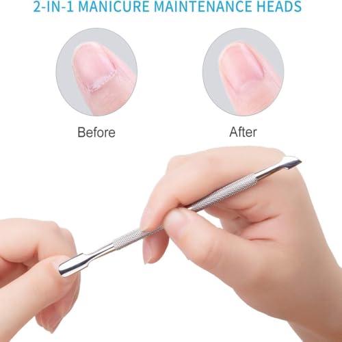 - تصميم مزدوج الأطراف: أداة عناية بالأظافر احترافية من الفولاذ المقاوم للصدأ، مزودة بدافع للجلد حول الظفر من جهة ومنظف أظافر من الجهة الأخرى لتقديم عناية متعددة الاستخدامات.
