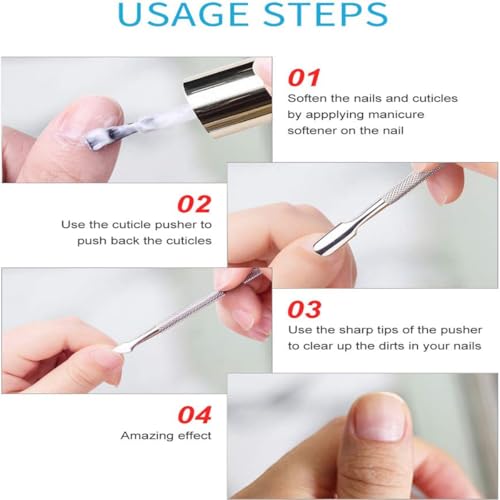 Generic - أداة دفع الزوائد اللحمية، مزيل لحمية الأظافر، مزدوجة الجوانب، أداة دفع أظافر الجلد الميت، أداة تنظيف الأوساخ من الأظافر من فولاذ مقاوم للصدأ، فضي
