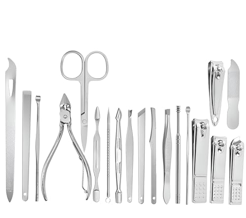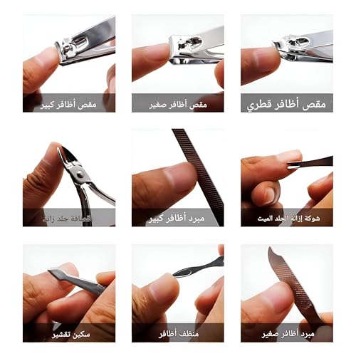 Generic - مجموعة أدوات العناية بالأظافر - مجموعة احترافية من الفولاذ المقاوم للصدأ لأظافر مثالية، تتضمن 19 قطعة للاستخدام في المنزل وأثناء العمل والسفر، تصميمها الصغير يجعلها مثالية للاستخدام أثناء التنقل