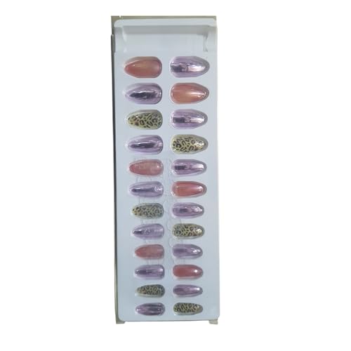Generic - مجموعة أظافر صناعية بطبعة نقشة جلد الفهد وتصميم وردة أرجوانية معدنية، 24 قطعة