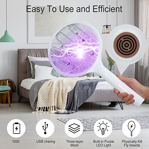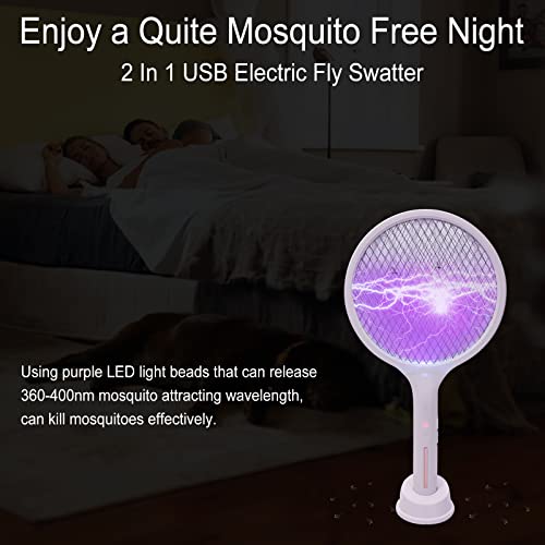 Naimkair - مضرب صاعق ذباب كهربائي ومصباح قاتل للحشرات 2 في 1 قابل لإعادة الشحن بمنفذ USB مع ضوء الأشعة فوق البنفسجية للبعوض من نيمكير، 3200 فولت
