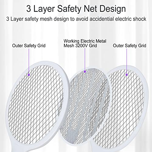 - 【كفاءة عالية】جهد الخرج 3200 فولت يمكن أن يقتل الذباب والبعوض والحشرات الطائرة الأخرى بسهولة بمجرد لمس الشبكة الكهربائية. تضمن الـ 3 طبقات الحماية من الصدمات الكهربائية، مع طبقتين واقيتين خارجيتين تغطيان طبقة العزل الداخلية من مادة ايه بي اس. أكثر أمانًا لك ولعائلتك.