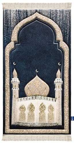 حnakesh - سجادة صلاة بتصميم قوس زهور ونقشة إسلامية تقليدية من حناكيش (أزرق)
