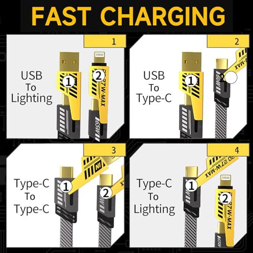 - 💪【التوافق الشامل】تم تصميم هذا الكابل ليتناسب مع مجموعة واسعة من الأجهزة، ويشمل العديد من الموصلات المتنوعة. كابل USB A إلى C، كابل USB C إلى C، كابل USB C إلى لايتنينج (L)، وكابل USB A إلى لايتنينج (L). إنه مثالي لمجموعة متنوعة من الأجهزة بما في ذلك أحدث طرازات ايفون واي باد وماك بوك وأجهزة أندرويد المختلفة، ويدعم كل من وظائف الشحن ونقل البيانات.