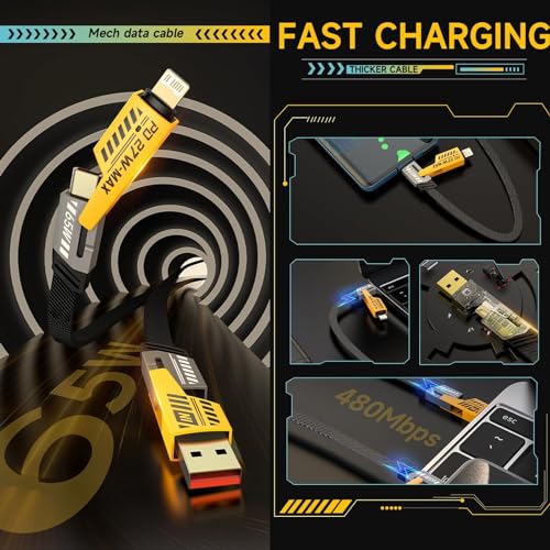- ⚡️【شحن سريع ونقل بيانات عالي السرعة】استمتع بشحن فائق السرعة مع كابل البيانات المعدني القابل للتحويل 4 في 1، الذي يمكنه توفير طاقة تصل إلى 65 وات، مما يضمن شحن أجهزة مثل ايفون، اي باد برو، أو ماك بوك برو حتى 50% في غضون 30 دقيقة فقط. بالإضافة إلى ذلك، استمتع بمزامنة البيانات بكفاءة مع سرعات مناسبة لنقل الملفات والصور والفيديوهات بسرعة.