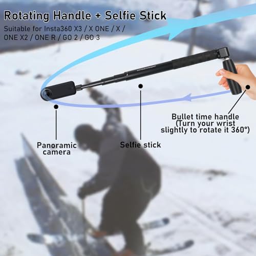 NALACAL - حبل بوليت تايم لكاميرا Insta360 X3 – طول 111 سم، عصا سيلفي غير مرئية قابلة للتمديد بمقبض دوار لكاميرات انستا360 X3 / GO 3 / ONE X2 / ONE R / ONE X / ONE / GO 2 من ناكال