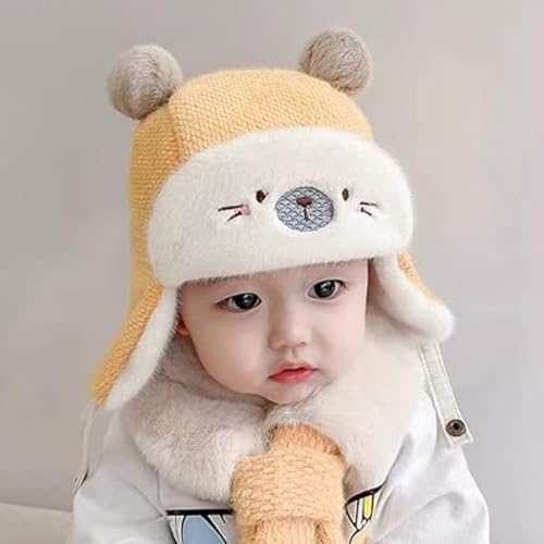 NALACAL - قبعات بايلوت كروشيه بغطاء للاذن، قبعة صغيرة بتصميم اذني ارنب، قبعات محبوكة دافئة للشتاء للاطفال الصغار والبنات والاولاد، قبعة افياتور صوف دافئة مع غطاء للاذنين للاطفال، قبعة صياد للاطفال من الجنسين من