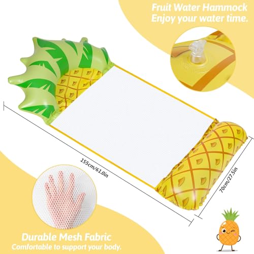 - تصميم عملي ومثير للاهتمام: تتميز الأرجوحة المائية الخاصة بنا بنمط فاكهة نابض بالحياة يميزها عن التصميمات المخططة النموذجية، مما يجعلك مركز الاهتمام في حمام السباحة أو الشاطئ. مع مسند الرأس القابل للنفخ ومسند الساق والدعم الشبكي 75 سم، يمكنك الاسترخاء بشكل مريح سواء كان مستلقيًا أو جالسًا، مما يجعل هذه العوامة مثالية للاستمتاع بمغامرات الصيف.